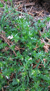 Chickweed, Stellaria media, is one of the most common edible succulent weeds in the South. It can grow year round but does not like intense heat preferring cool, wet weather. It is frequently described by foragers as one of their favorite edibles. It grows low to the ground usually in dense, tangled mats. You can even find it in the cracks of sidewalks in the city. It is stringy and flexible with pointed oval leaves that grow in pairs along its stem. When it blooms it has a white flower with five petals. However, the petals are notched in such a way that it appears to have ten petals. These tiny flowers at the tip of the plant will eventually drop tiny brown seeds. Chickweed has nitrogen-fixing qualities for your garden which probably benefited the above garlic. It is a great plant for beginning foragers. It is called chickweed because chickens love to eat it. It is a delicate crunchy green with a mild earthy taste much like alfalfa sprouts. It is wonderful in salads and provides choline, vitamin A, vitamin C, vitamin B6 and B12, beta carotene and vitamin D. It contains the minerals calcium, potassium, phosphorus, zinc, iron, manganese, sodium, silica, selenium, and copper.